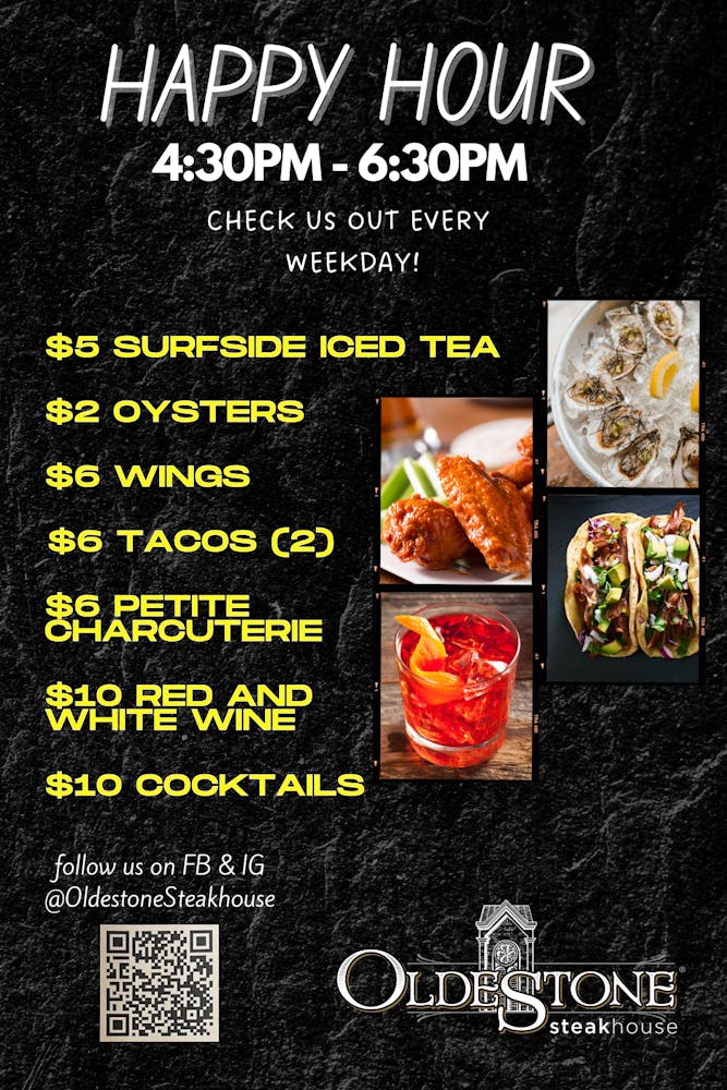 Make the most of your weekdays at Oldestone Steakhouse with our Happy Hour specials!