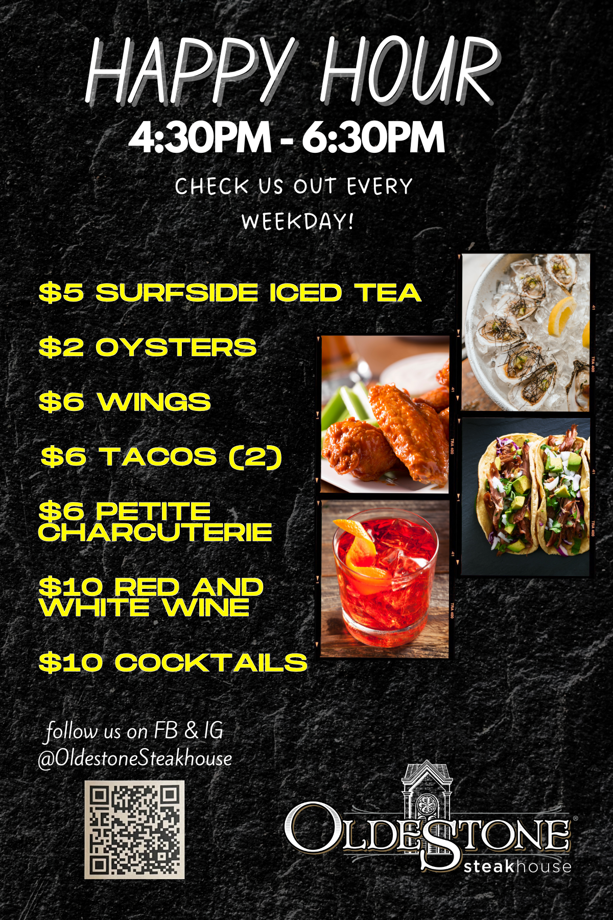 Make the most of your weekdays at Oldestone Steakhouse with our Happy Hour specials!